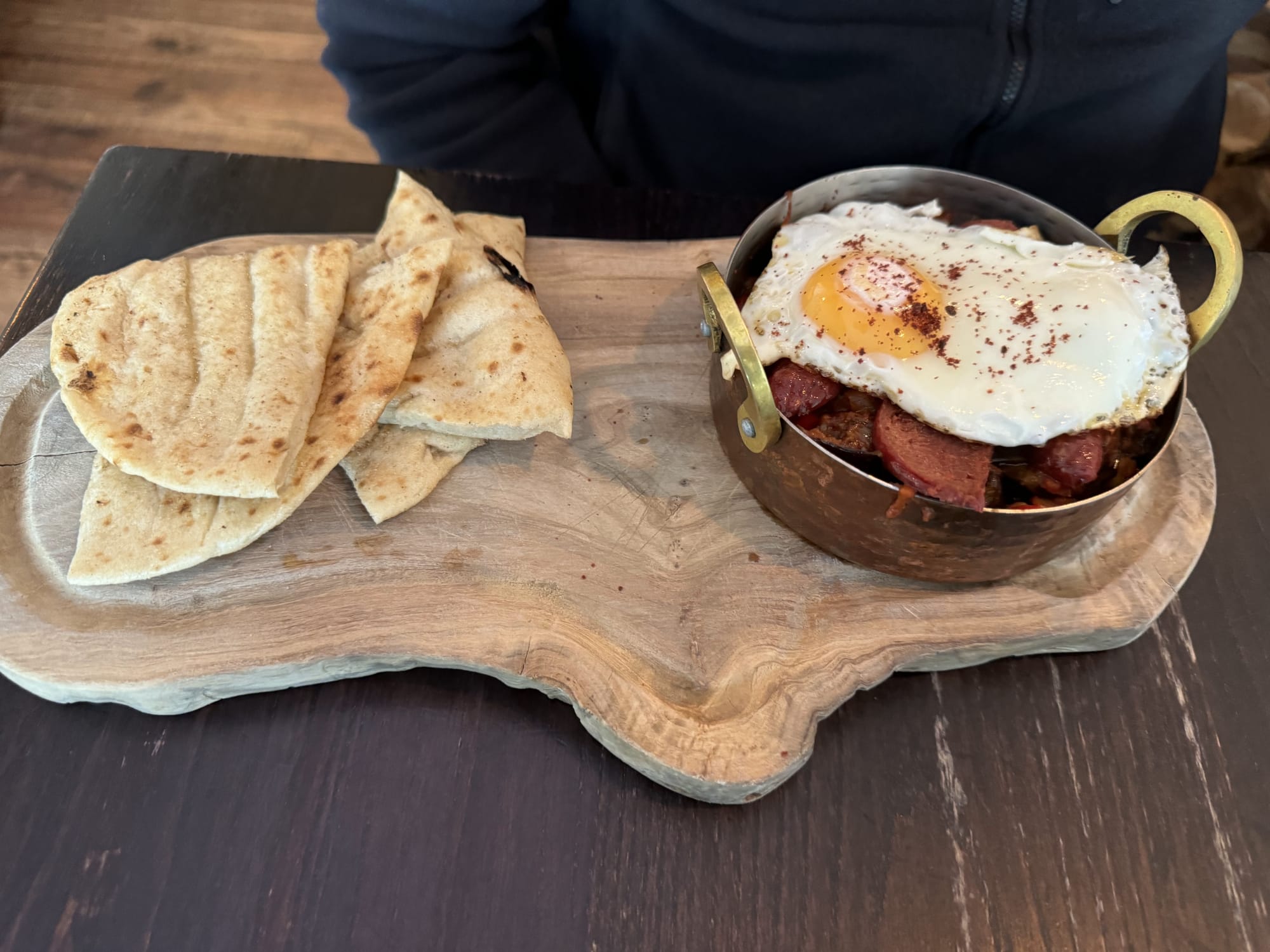 The Shakshuka wasn't what I expected... just look at that fried egg but it was still very tasty. There was a good amount of sauce and the sausage was good. Mine was the "Mediterranean Breakfast" with enough bright and fresh flavours to make up for the last couple of days.